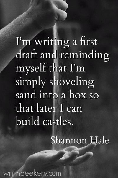 When you build a house, you don’t just snap your fingers and see it magically appear in all its perfection. They actually spray paint an outline on the ground, put in stakes, dig a hole, put down footings and pour concrete, put up the framework, sheet rock, etc. The siding, rock, carpet, paint, furniture and decor does NOT happen until WAY later. It’s a huge process! And so is writing a story. Your first draft may not perfectly resemble what you had in mind when you’re finished, but as you comb through it and edit it, draft after draft, you will see your story morph into everything you wanted it to be. The trick is to not give up!